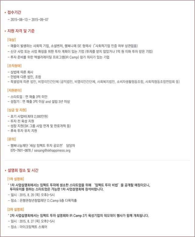 [행복나눔재단] 제2회 세상 임팩트 투자 공모전 참가 기업 모집 공고 (~9.7.)