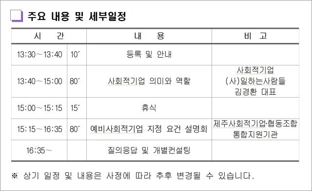 서귀포에서 예비사회적기업 지정 설명회를 개최합니다.