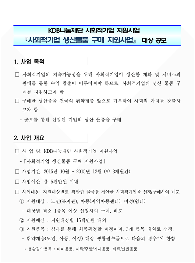 사회적기업 생산 물품 구매 지원을 한다고 합니다.