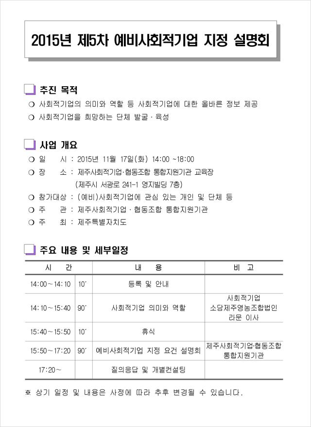 2015년 제5차 예비사회적기업 지정 설명회를 진행합니다.