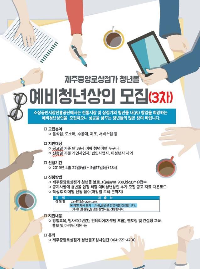 제주중앙로상점가 청년몰 예비청년상인 모집(3차)(~5.17)