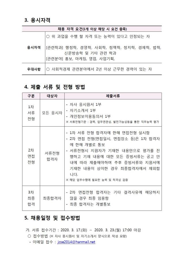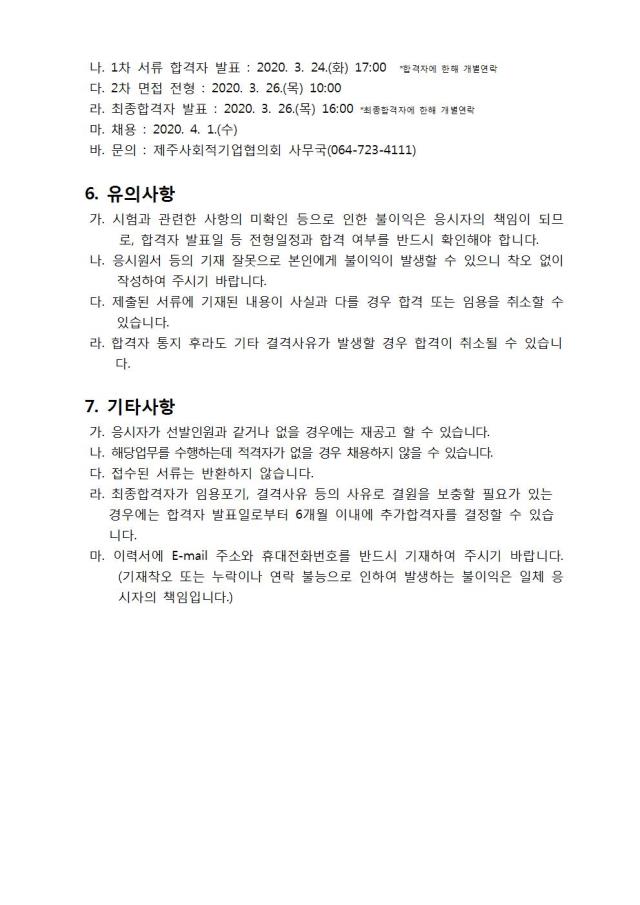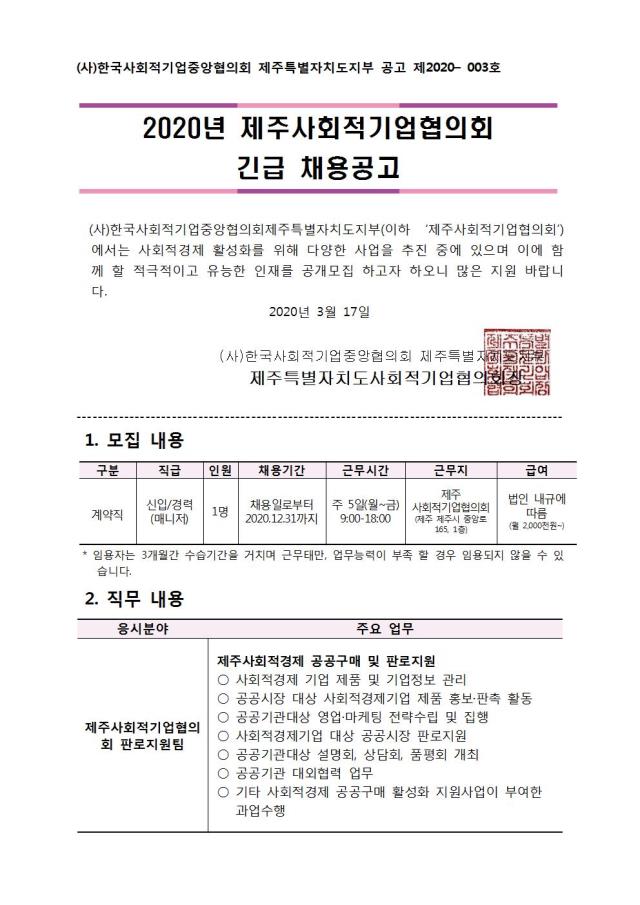 (공고) 제주사회적기업협의회 긴급 채용 공고(~3.23)