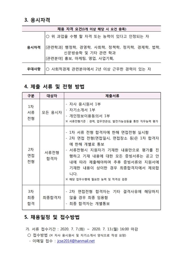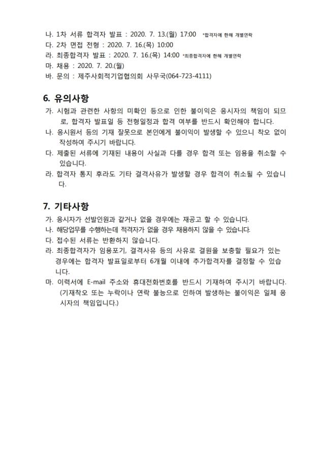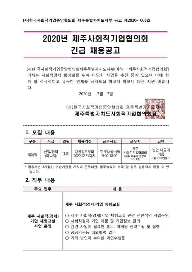 (공고) 제주 사회적(경제)기업 체험교실 사업 담당자 채용 공고(~7.13)