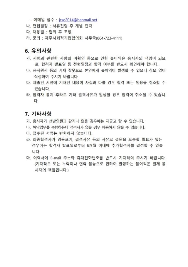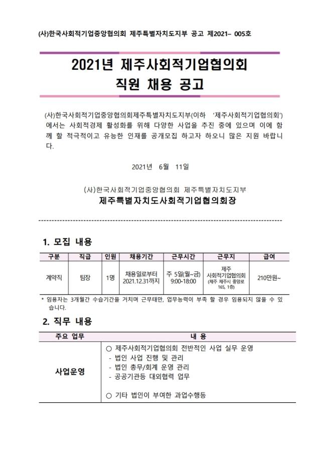 (공고) 제주 사회적기업협의회 직원 채용 공고(~6.17)