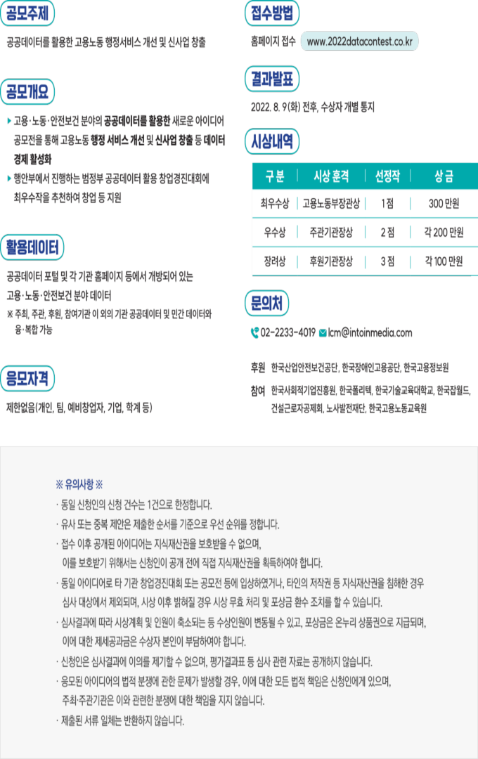 [공고] (고용노동부) 2022 고용노동 공공데이터 활용 아이디어 공모전(~7/31)