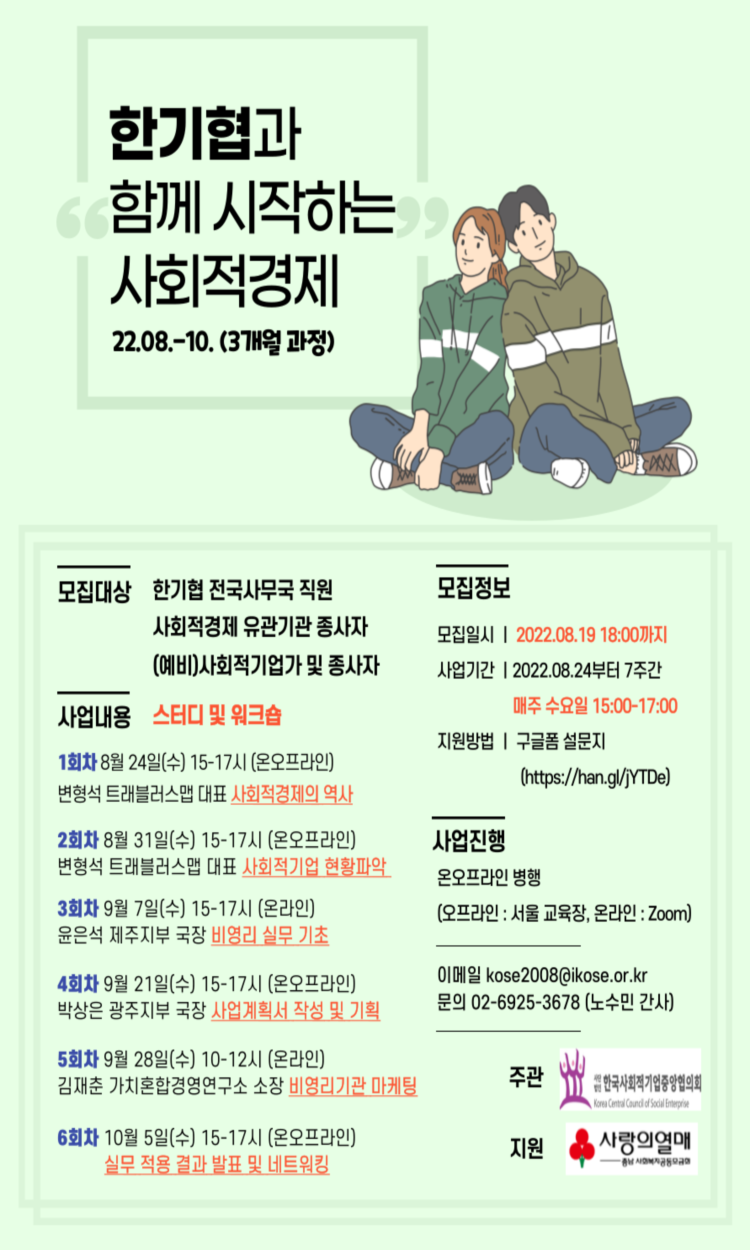 [교육] (한국사회적기업중앙협의회) 한기협과 함께 시작하는 사회적경제 (~8/19)