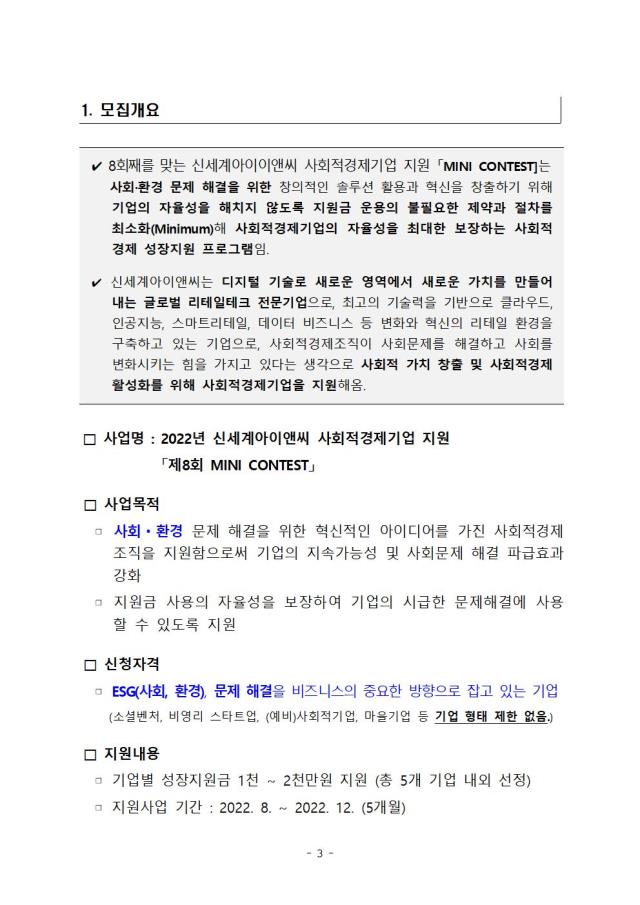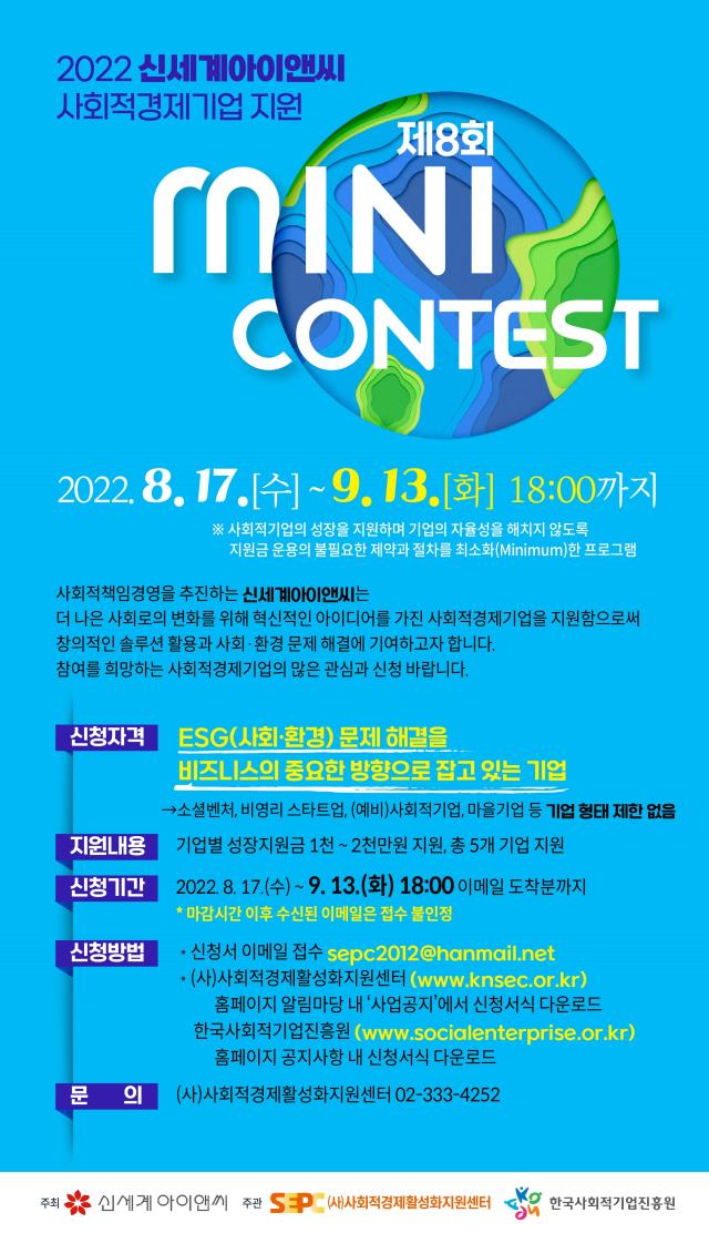 [공고] (2022신세계INC) 사회적경제기업 지원 '제8회 MINI CONTEST'(~9/13)