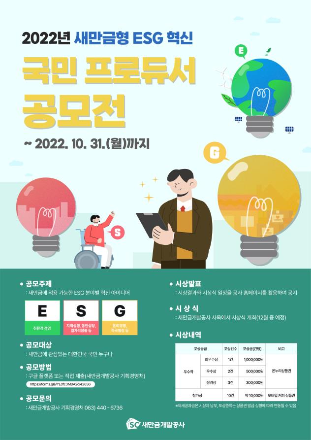 새만금형 ESG 혁신 국민 프로듀서 공모전 안내드립니다.
