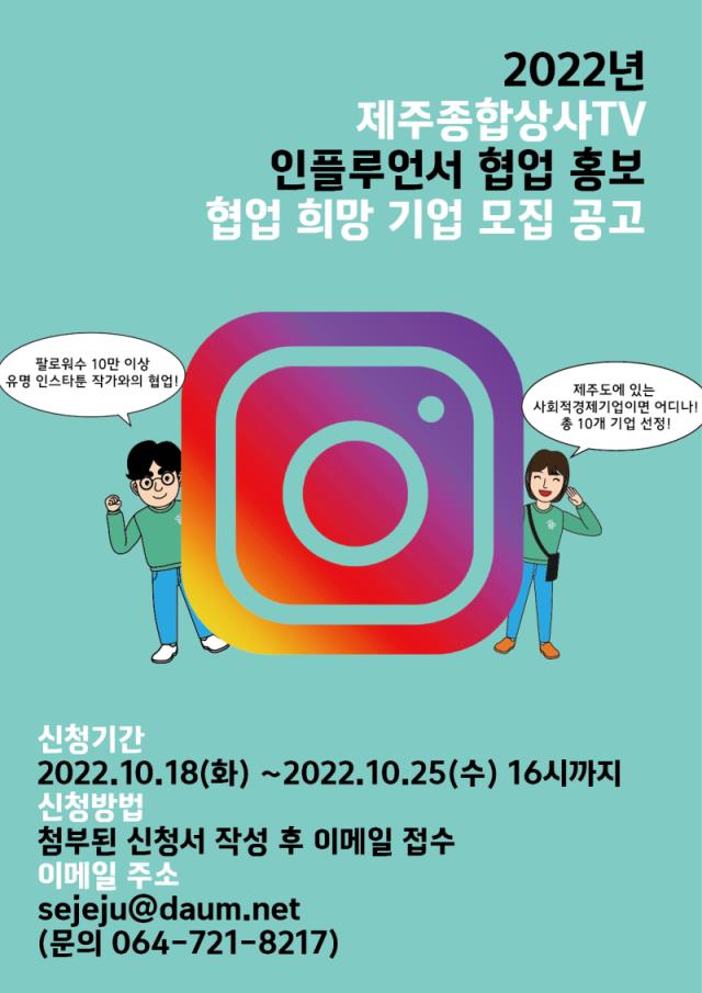 [공고] (제주종합상사) 2022 인플루언서 협업 홍보 참여업체 모집 공고 (~10/25)