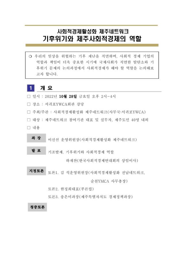 [안내] (사회적경제활성화 제주네트워크) 사회적경제 정책개선 워크숍'기후위기와 제주사회적경제의 역할' (10/28)