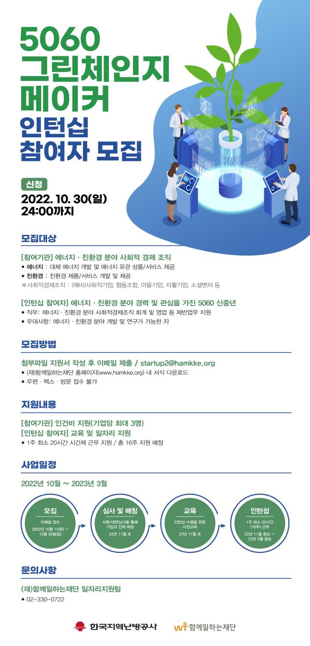 [공고] ((재)함께일하는재단) 5060 그린체인지메이커 3기 참여기관 및 참가자 모집 (~10/30)