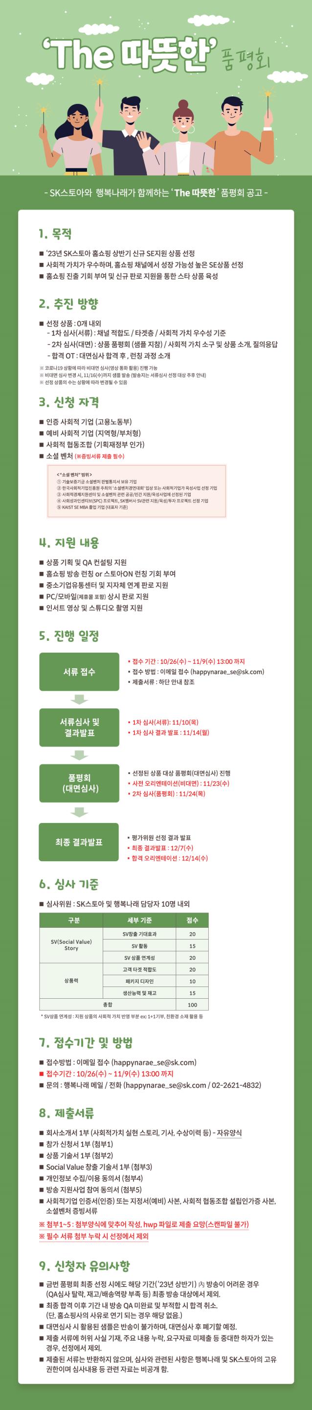SK스토아 ‘23년 상반기 방송상품 선정 품평회(‘The 따뜻한’ 품평회) 참여 기업을 모집합니다.