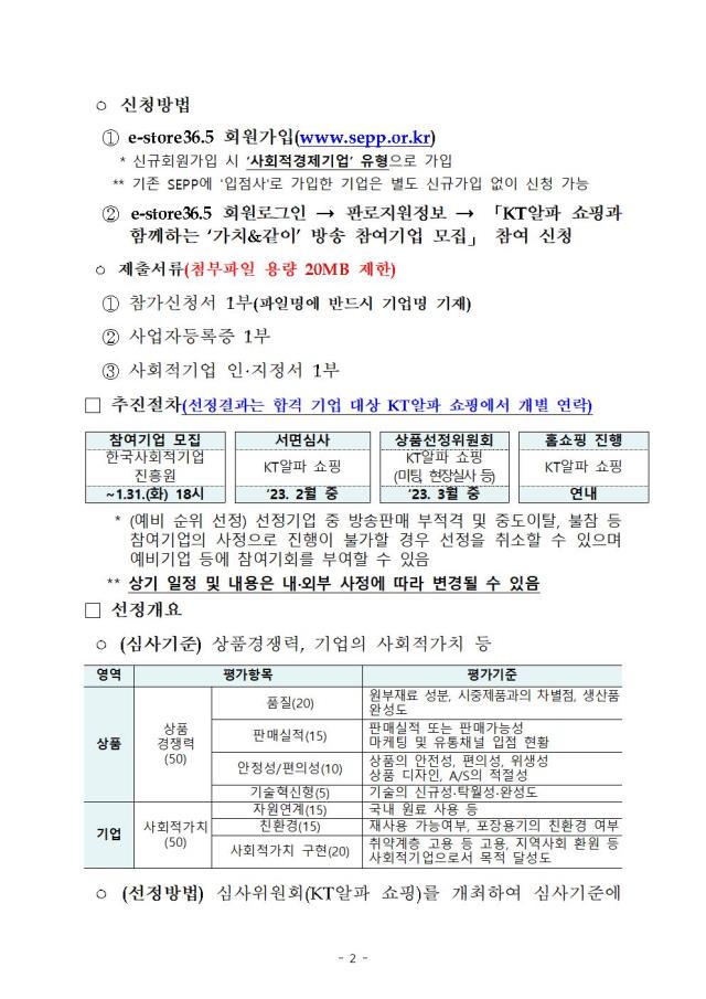 [공고] (한국사회적기업진흥원) KT알파 쇼핑 과 함께하는 '가치&같이' 방송 참여기업 모집 공고 (~1.31)