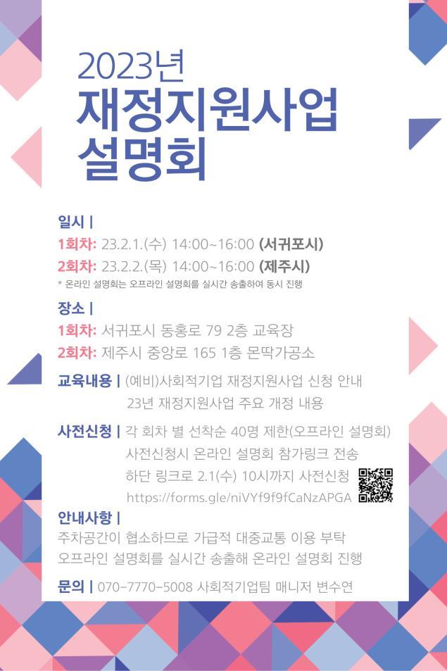 [알림] (제주사회적경제네트워크) 2023년 재정지원사업 설명회 알림 (2.1~2.2)