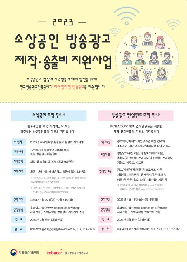 [공고] (한국방송광고진흥공사) 2023년 소상공인 방송광고 제작·송출비 지원사업 모집 안내 (~2.14)