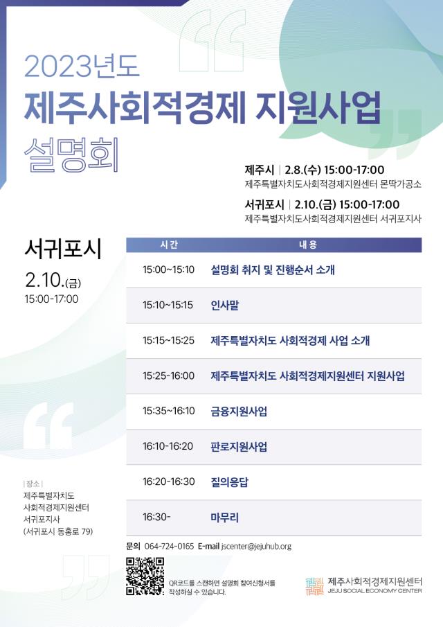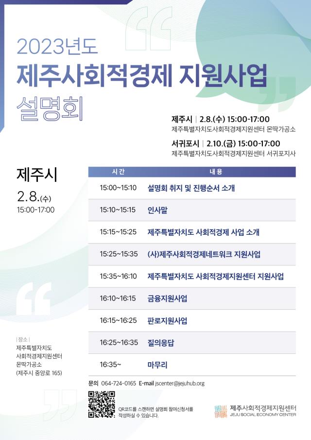 [공고] (제주사회적경제지원센터) 2023 제주사회적경제 지원사업 설명회 (2. 8,10)