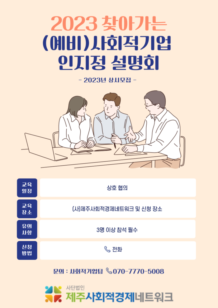 [안내] (제주사회적경제네트워크) 2023년 찾아가는 (예비)사회적기업 인지정 설명회 알림