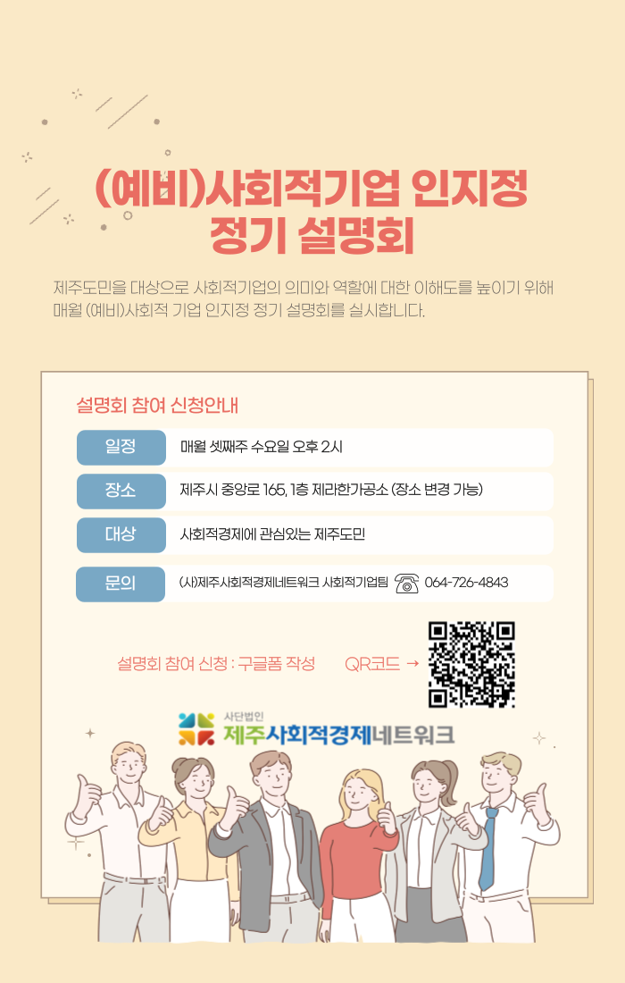 [안내] (제주사회적경제네트워크) 2023년 (예비)사회적기업 인지정 정기 설명회 알림