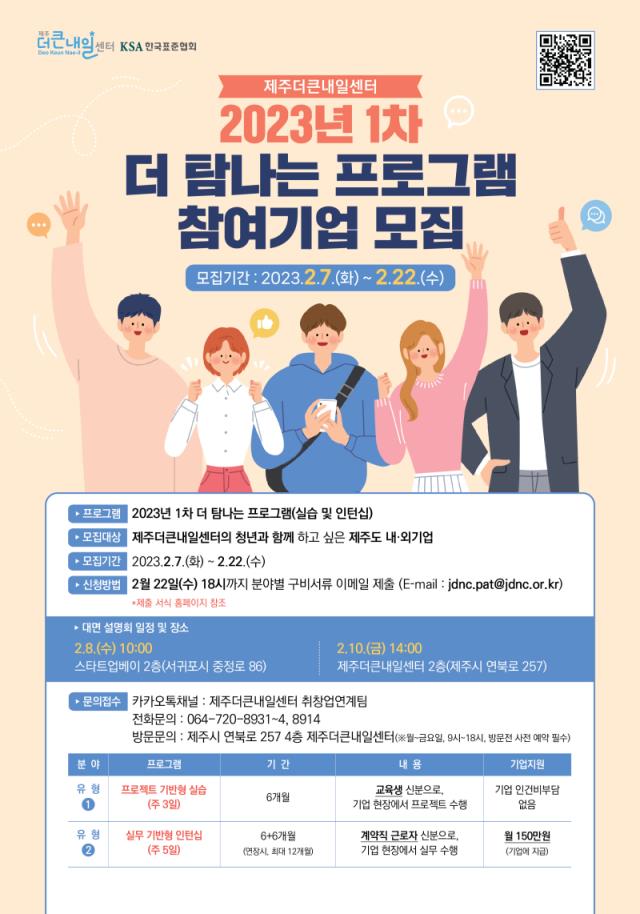 [공고] (제주더큰내일센터) 『더 탐나는 프로그램』 참여기업 모집공고 (~2.22)