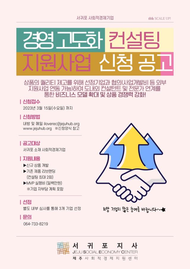 [공고] (제주사회적경제지원센터 서귀포지사) 서귀포 사회적경제기업 경영 고도화 컨설팅 지원사업 (~3.15)