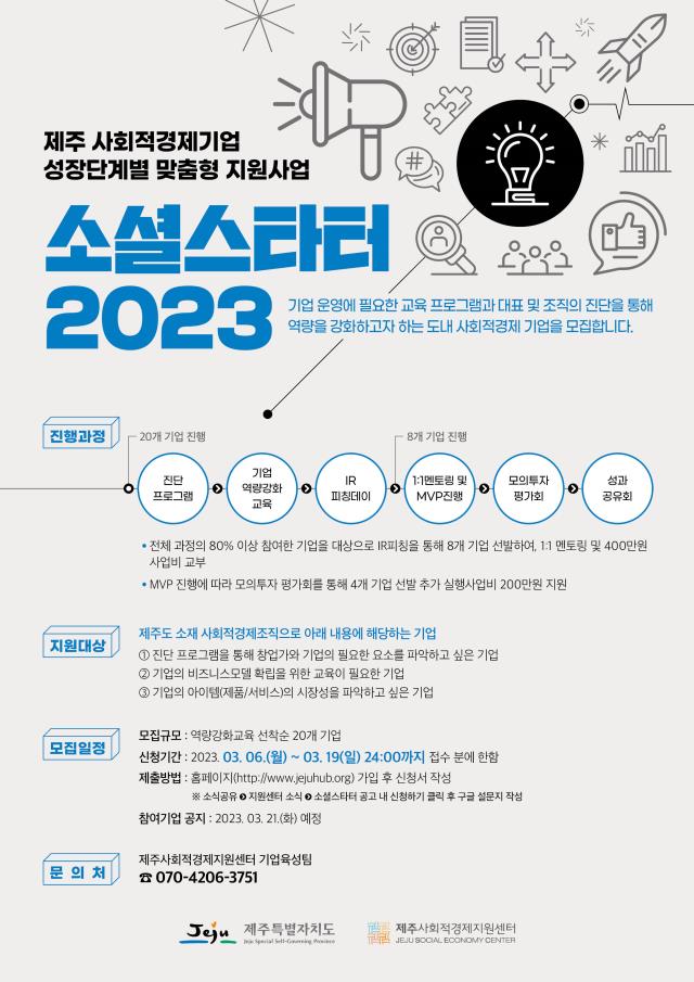 [공고] (제주사회적경제지원센터) '소셜스타터 2023' 참여기업 모집 (~3.19)