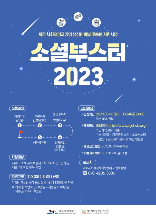 [공고] (제주사회적경제지원센터) 소셜부스터 2023 참여기업 모집 (~3.24)