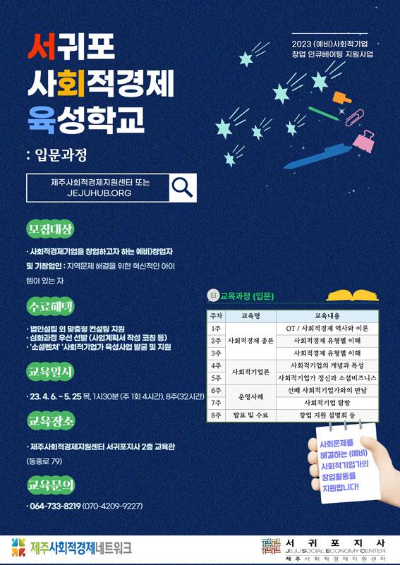 [안내] (제주사회적경제지원센터 서귀포지사)2023 서귀포 사회적경제 육성학교 모집 (~3.27)