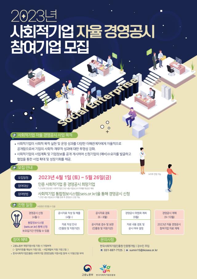 [공고] (한국사회적기업진흥원) 2023년 사회적기업 자율 경영공시 참여기업 모집 공고(~5.26)