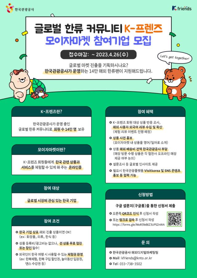 [공고] (한국관광공사) 한국관광공사 수출상품 홍보 지원사업 참여기업 모집공고 (~4.26)