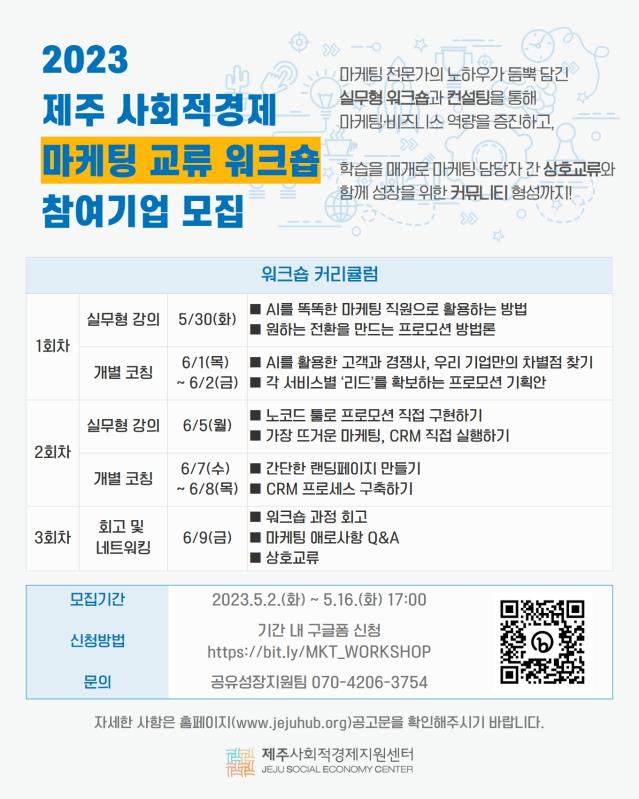 [알림] (제주사회적경제지원센터) 2023 마케팅 분야 교류 워크숍 (~5.16)