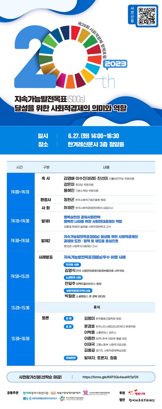[행사] (진흥원) 제20회 사회적경제 정책포럼 (6.27)