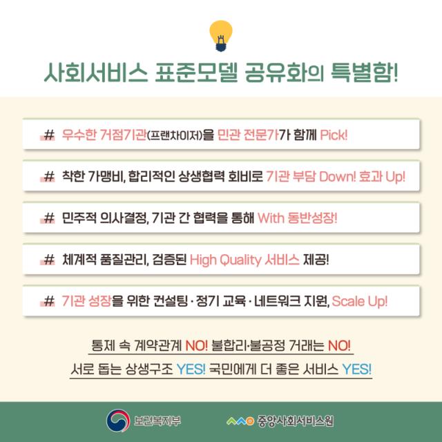 우수한 사회서비스 제공기관의 서비스 모델과 경영 노하우를 표준화하고,