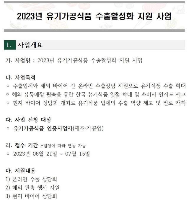 1.2023년_유기가공식품_수출활성화_지원_사업_사업안내문.hwp