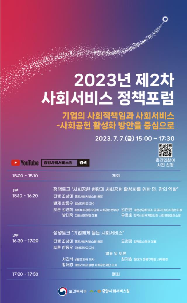 [안내] (중앙사회서비스원) 2023년 제2차 사회서비스 정책포럼 신청 (~7.6)