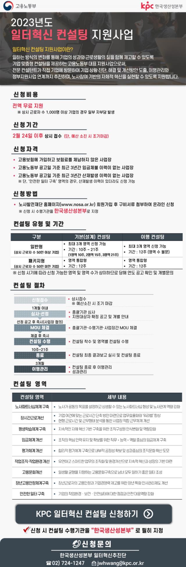 [공고] (한국생산성본부) 2023년 일터혁신 컨설팅 지원사업장 모집 공고 (~8.11)