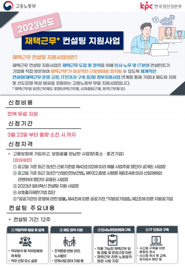 [공고] (한국생산성본부) 2023년도 재택근무 종합 컨설팅 지원사업 수요기업 모집 (~예산소진시)