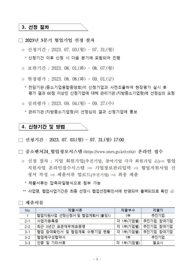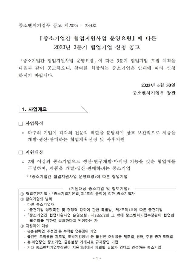 [공고] (중소벤처기업부) 2023년 3분기 협업기업 모집 공고 (~7.31)