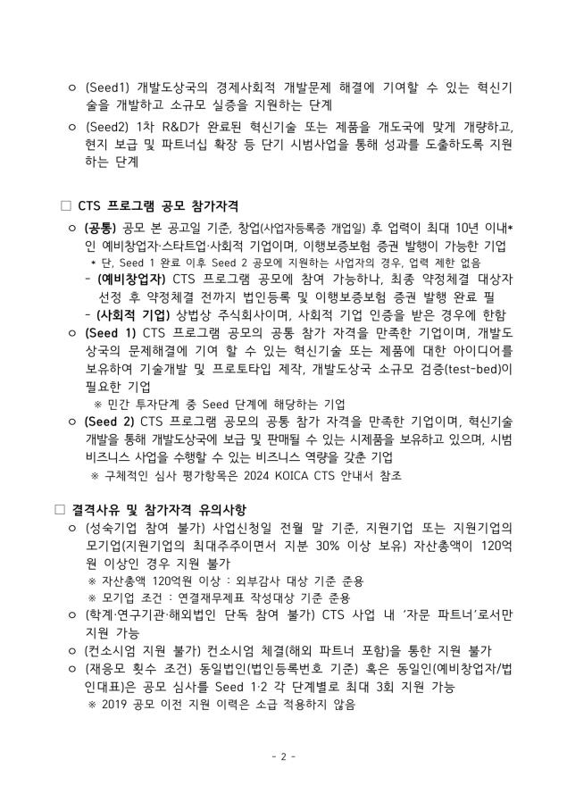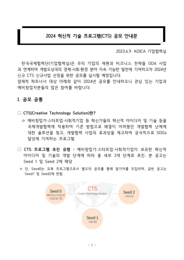 [공모] (코이카) 2024 혁신적 기술 프로그램(CTS) 공모 (~8.9)