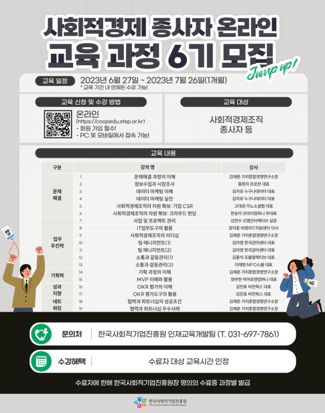 [공고] (진흥원) 사회적경제 종사자 온라인 교육 과정 6기 모집 (~7.26)