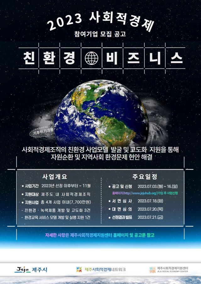 [공고] (제주사회적경제지원센터) [2023 사회적경제 친환경 비즈니스] 참여기업 모집 (~7.16)