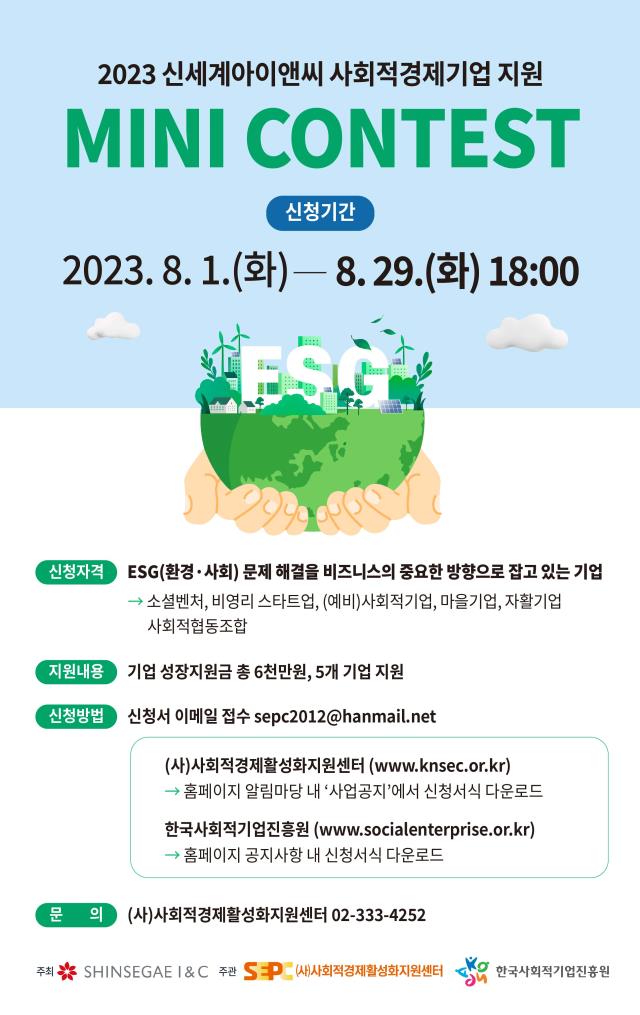 [공고] (신세계아이앤씨) 2023 신세계아이앤씨 사회적경제기업 지원 MINI CONTEST (~8.29)