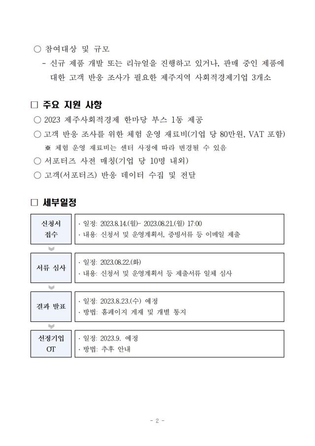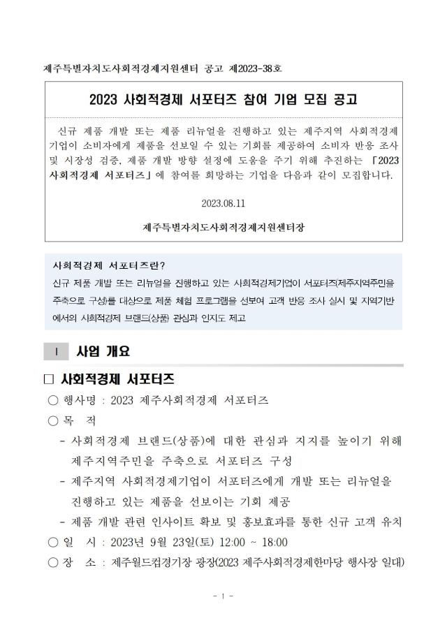 [공고] (제주사회적경제지원센터) 2023 제주사회적경제 서포터즈 참여 기업 모집 공고 (~8.21)