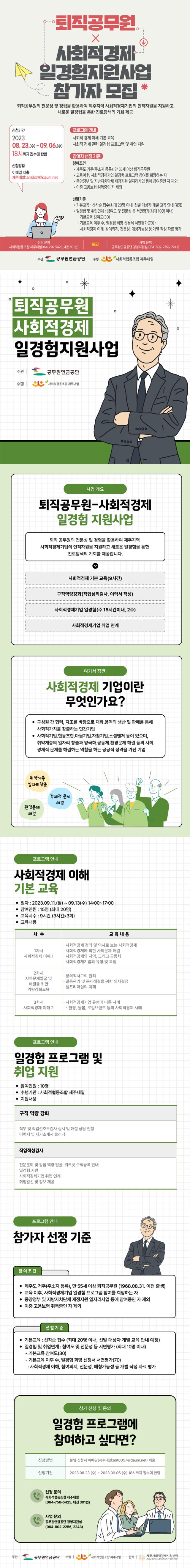 [모집] (공무원연금공단) 퇴직공무원 - 제주 사회적경제 일경험 지원사업 참가자 모집 (~9.6)