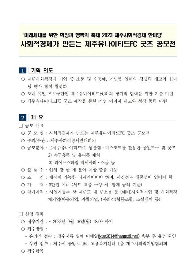 [공모] 제주사회적경제 한마당 기념 제주유나이티드FC 굿즈 공모전(*수정) (~9.18)