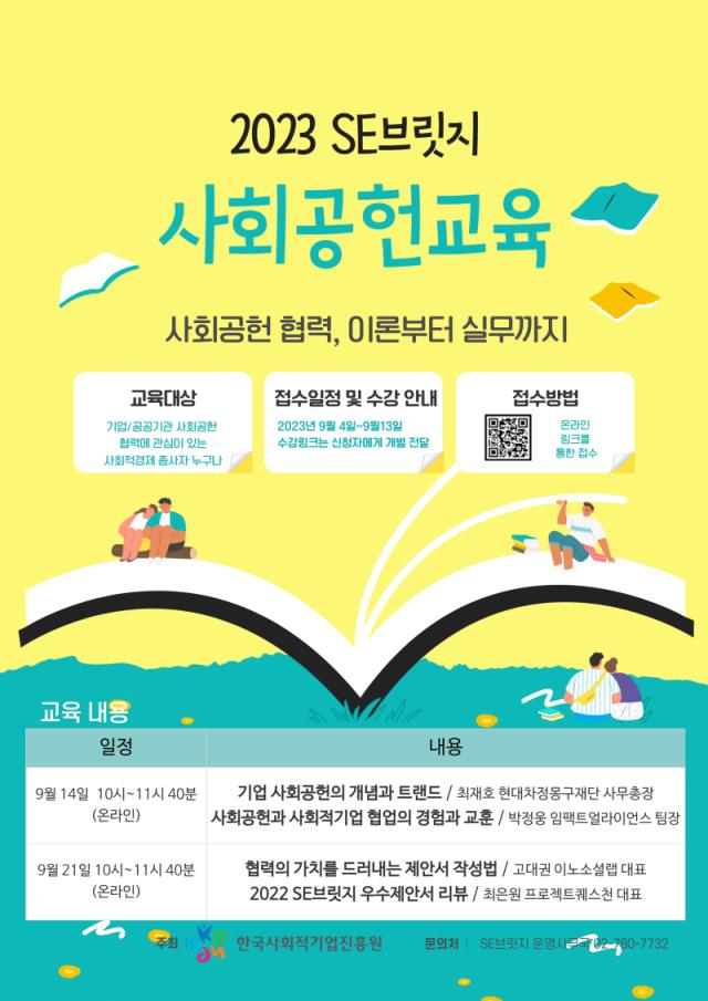 [알림] (한국사회적기업진흥원) 2023 SE브릿지 사회공헌교육 (~9.13)