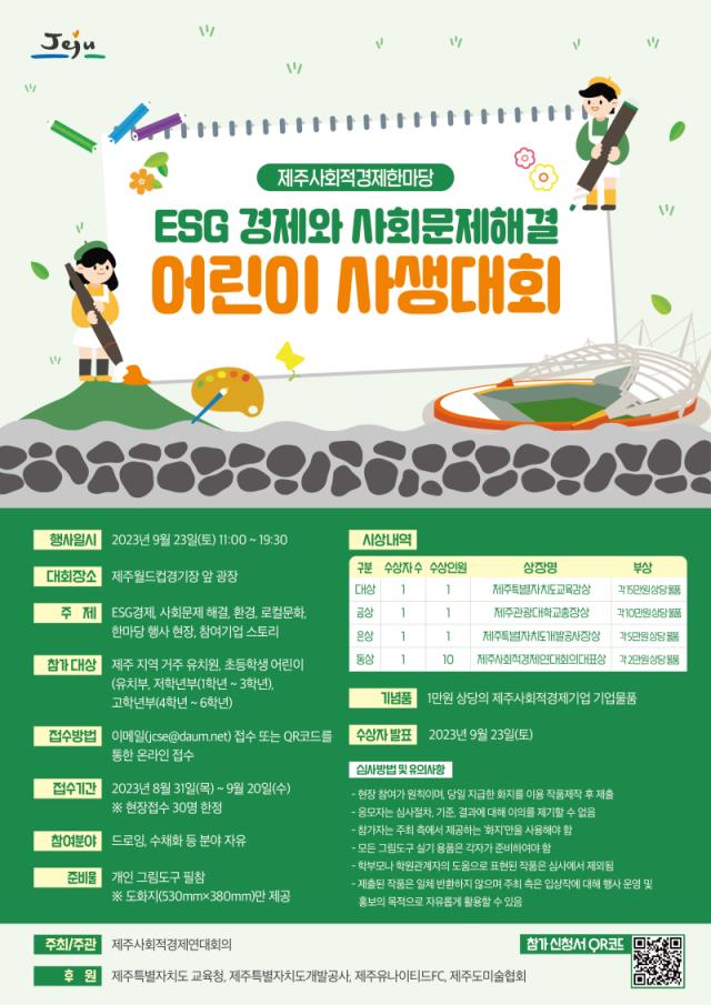 [안내] 2023제주사회적경제한마당 기념 ESG경제와 사회문제해결 어린이 사생대회 안내