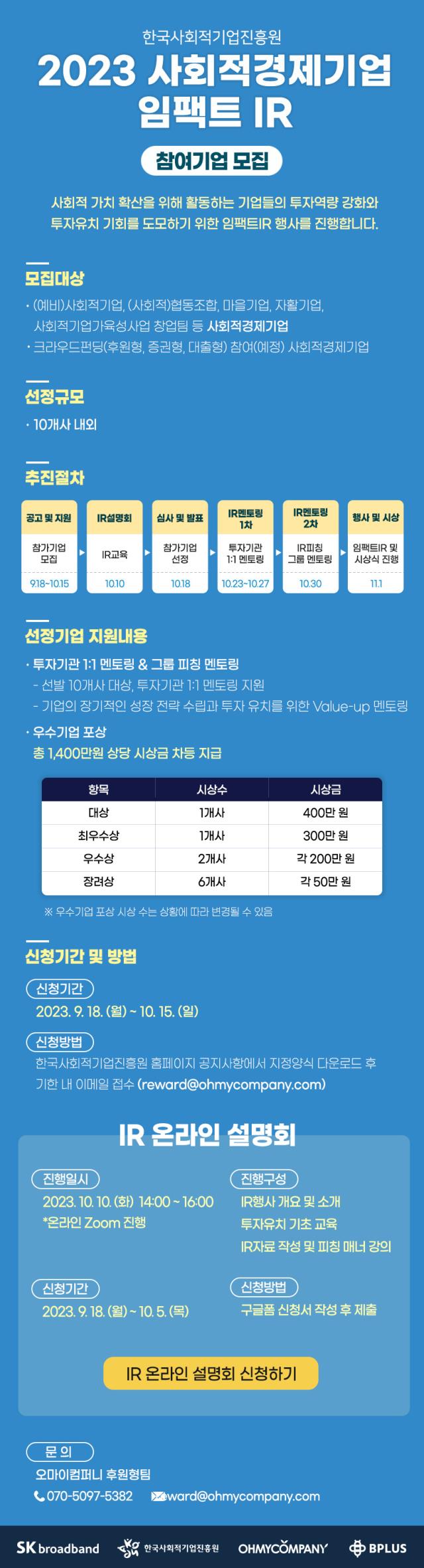 IR 온라인 설명회 신청 링크 ▶ https://docs.google.com/forms/d/e/1FAIpQLSfH8xbo0mILGjWcHVQ_DROLvgCPIlYF_7LafD0idO8IDqnBRw/viewform?usp=sharing