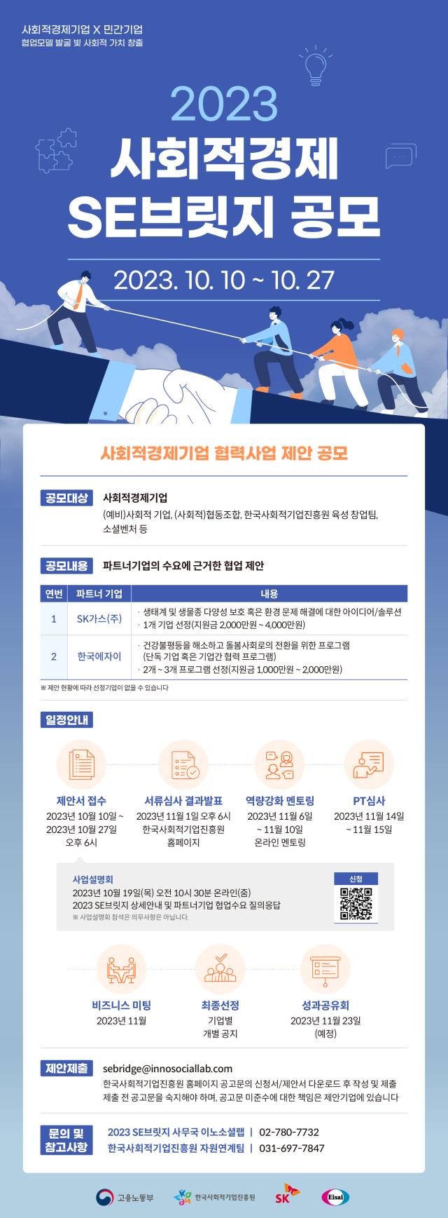 [공모] (한국사회적기업진흥원) 2023 사회적경제 SE브릿지 공모 (~10.27)