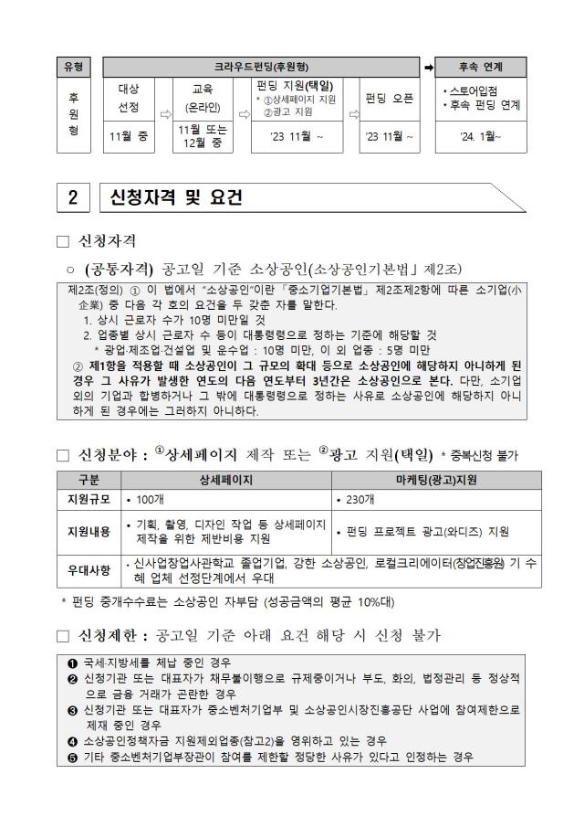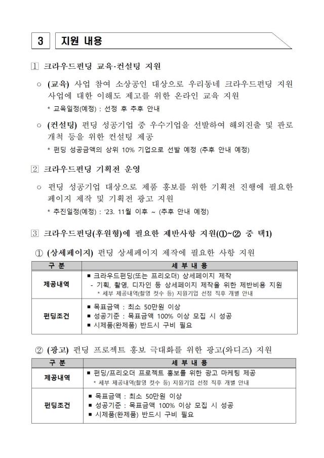 2023년+우리동네+크라우드펀딩+후원형+소상공인+추가+모집공고문.hwp