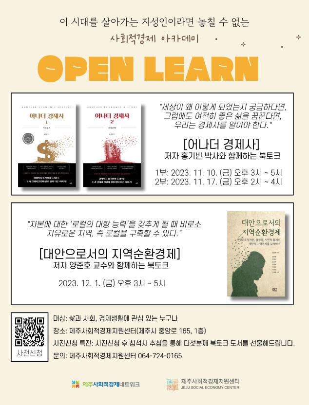 이 시대를 살아가는 지성인이라면 놓칠 수 없는 사회적경제 아카데미, Open Learn에 초대합니다.